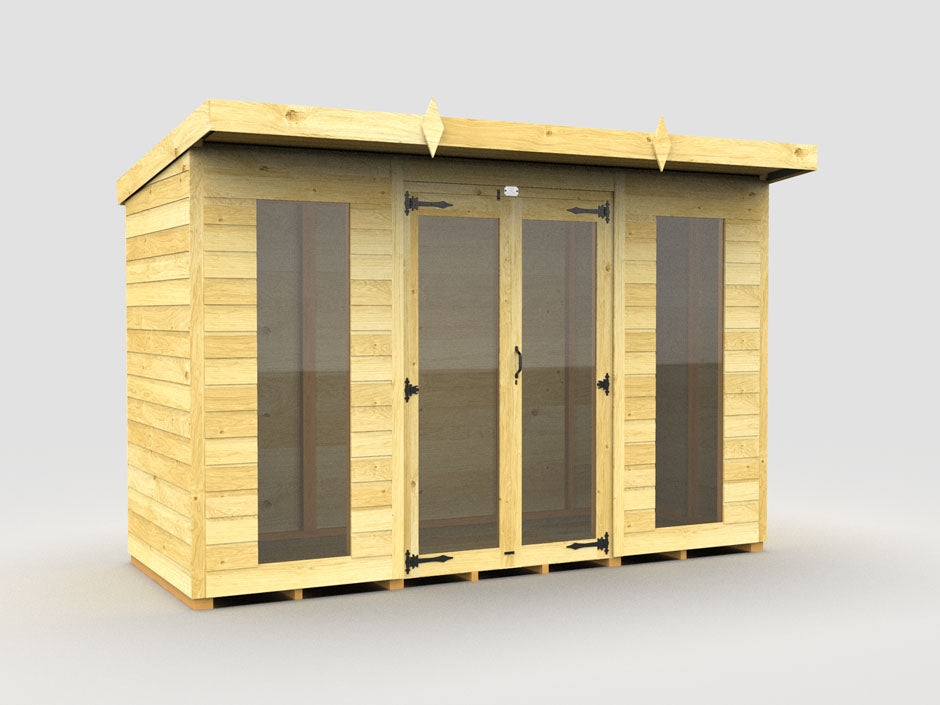 • All our summer houses are manufactured with pressure treated tanalised timber on the outside of the building to help against rotting, fungal and insect attack