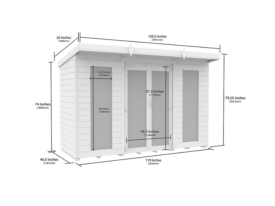 10ft x 4ft Pent Summer House Loglap (Full Height Window)
