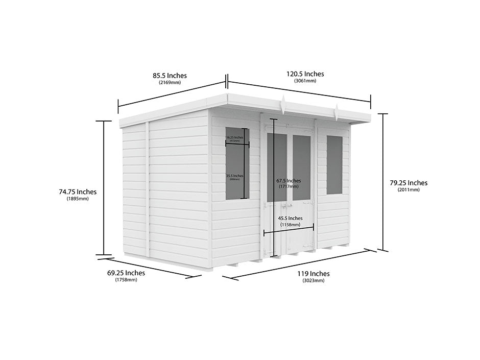 All our summer houses come in metric sizes, please see the dimensions diagram for further details.