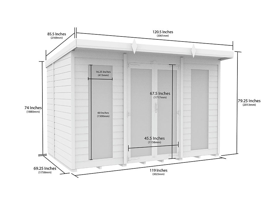 All our summer houses come in metric sizes, please see the dimensions diagram for further details.