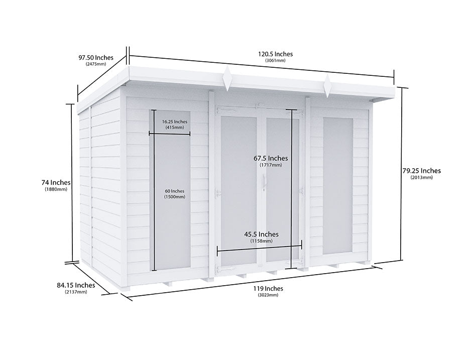 All our summer houses come in metric sizes, please see the dimensions diagram for further details.