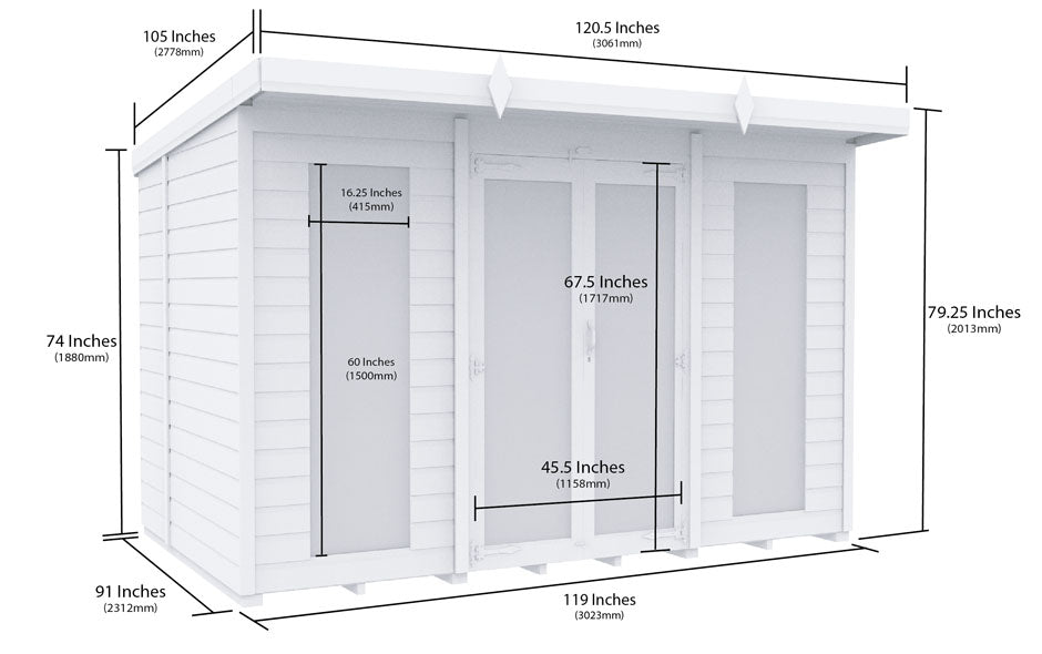 All our summer houses come in metric sizes, please see the dimensions diagram for further details.
