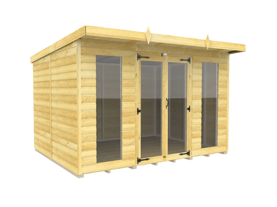 10ft x 8ft Pent Summer House Loglap (Full Height Window)