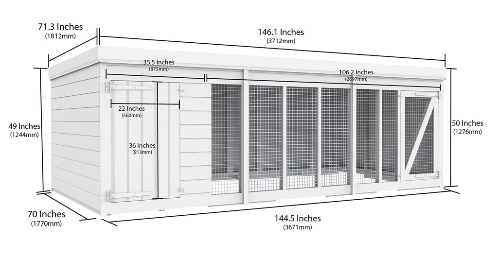 This 12ft X 6ft Dog Kennel and Run is the ideal outside shelter for your dog to allow the perfect space that they need while staying in comfort. This 12ft X 6ft Dog Kennel and Run comes water based treated inside and out to aid against rot so it will last for years.