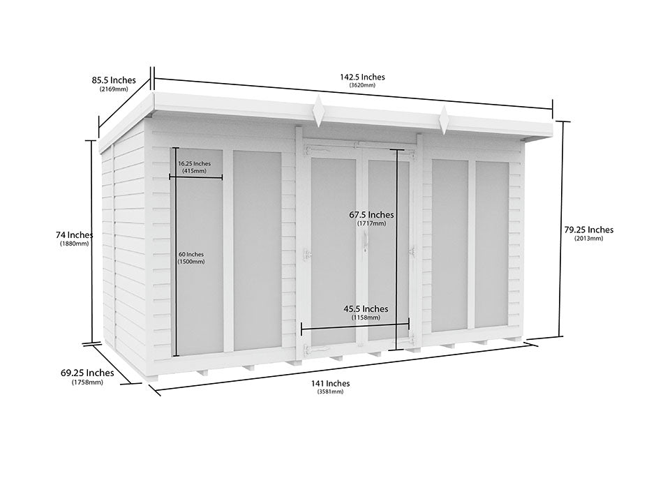 12ft x 6ft Pent Summer House Loglap (Full Height Window)