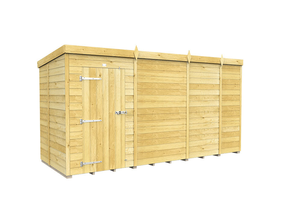 The tongue and groove construction we use in the F&F 13ft x 5ft PentSheds is a much more substantial design than your normal overlap cladding, utilising thicker material for an overall stronger structure. with its interlocking tongue and groove design you can guarantee this will stop rain water from entering the building. With its heavy duty floor you have also the peace of mind that you wont be restricted to storing the heavier of goods within. These sheds are the ultimate garden storage building which will suit all your needs.
