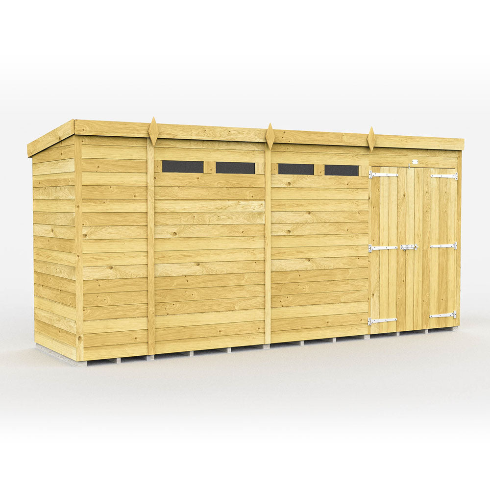Our F&F 14ft x 4ft Pent Security Sheds are built to withstand the heavier elements of British weather, tongue and groove cladded panels which are pre-engineered to be as weather resistant as possible. No matter whatever you store inside of the wooden garden sheds, you can be sure it will be protected. With a variety of window placement options, you are able to make maximum use of the natural source of light.