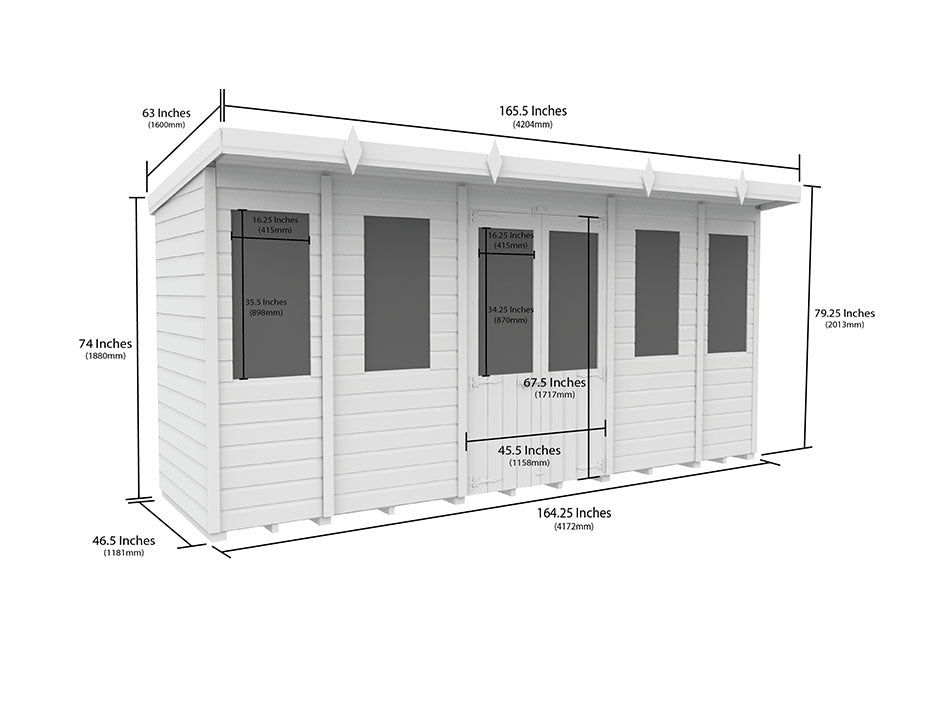 All our summer houses come in metric sizes, please see the dimensions diagram for further details.