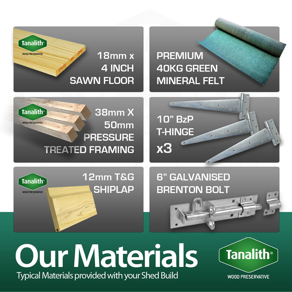 • All our buildings are manufactured with pressure treated tanalised timber on the outside of the building to help against rotting, fungal and insect attack