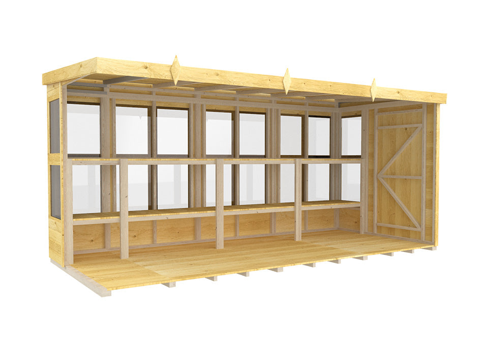 Our potting sheds are built to withstand the heavier elements of British weather, with tongue and groove cladded panels, which are pre-engineered to be as weather resistant as possible. No matter plants and prized possessions you store in our potting sheds, you can be sure it will be protected. With a variety of window placement options, you can make maximum use of the natural source of light. With a FREE internal shelf this will allow you to position your plants in the prime location to help them grow.?The pressure treated tongue and groove construction is a much more substantial design than your normal overlap cladding, utilising thicker material for an overall stronger structure. With its heavy-duty floor, you have also the peace of mind that you won’t be restricted to storing the heavier of goods within. These potting sheds are the ultimate plant storage building which will suit all your needs.