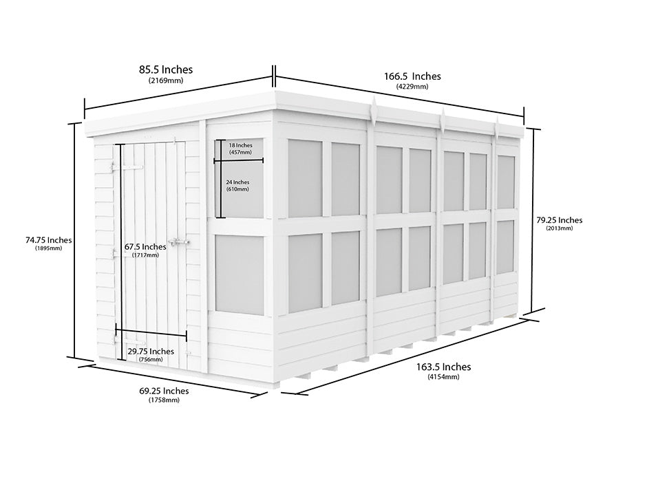 All our sheds come in metric sizes, please see the dimensions diagram for further details.