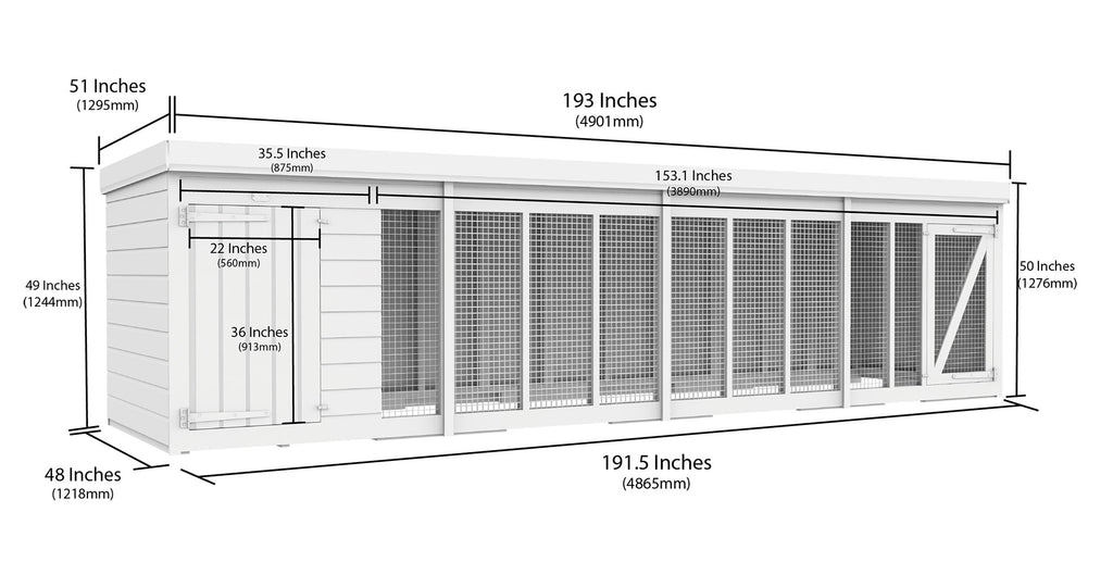 This 16ft X 4ft Dog Kennel and Run is the ideal outside shelter for your dog to allow the perfect space that they need while staying in comfort. This 16ft X 4ft Dog Kennel and Run comes water based treated inside and out to aid against rot so it will last for years.