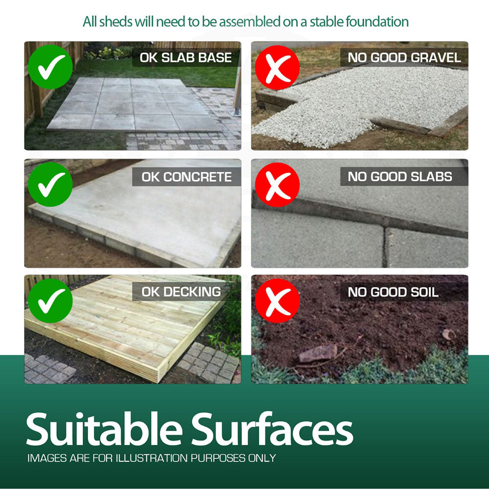 • 18mm Floor board pressure treated tanalised planks consisting of floor bearers attached underneath to elevate off the ground