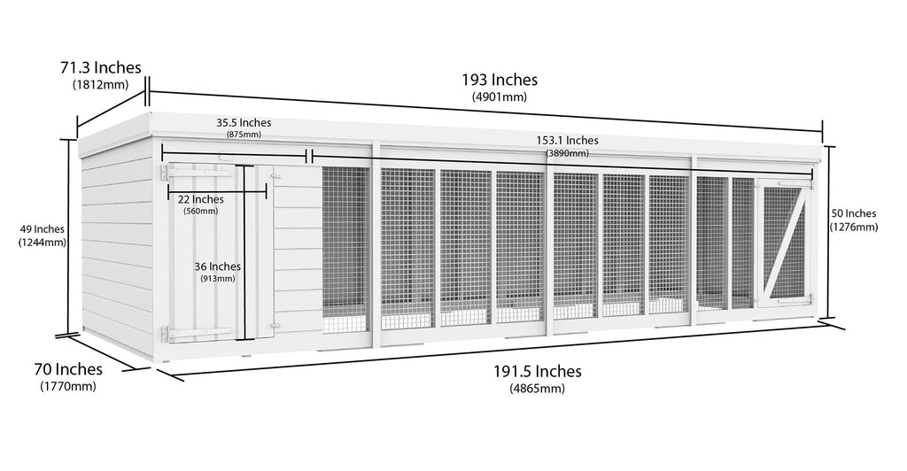 This 16ft X 6ft Dog Kennel and Run is the ideal outside shelter for your dog to allow the perfect space that they need while staying in comfort. This 16ft X 6ft Dog Kennel and Run comes water based treated inside and out to aid against rot so it will last for years.