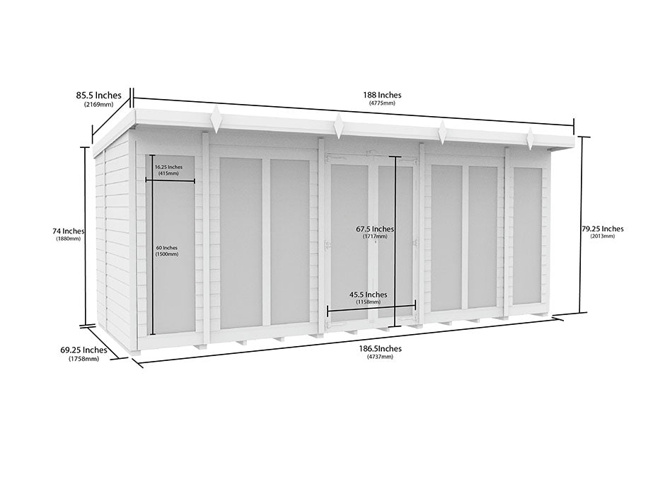 16ft x 6ft Pent Summer House Loglap (Full Height Window)