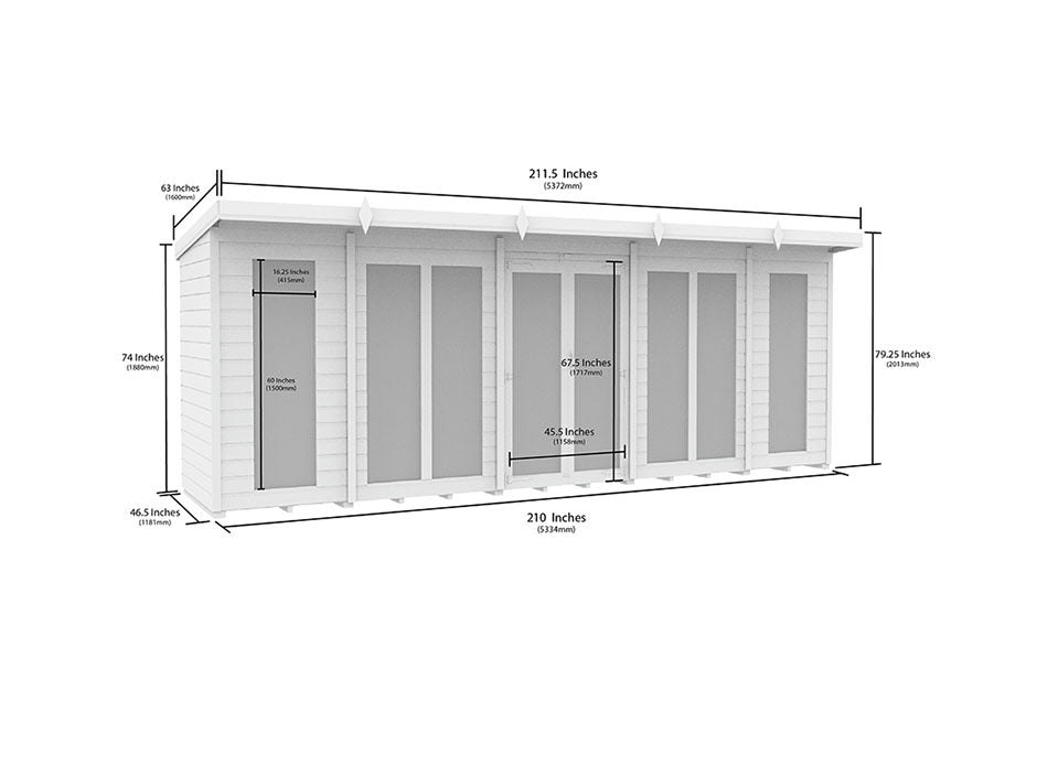 18ft x 4ft Pent Summer House Loglap (Full Height Window)