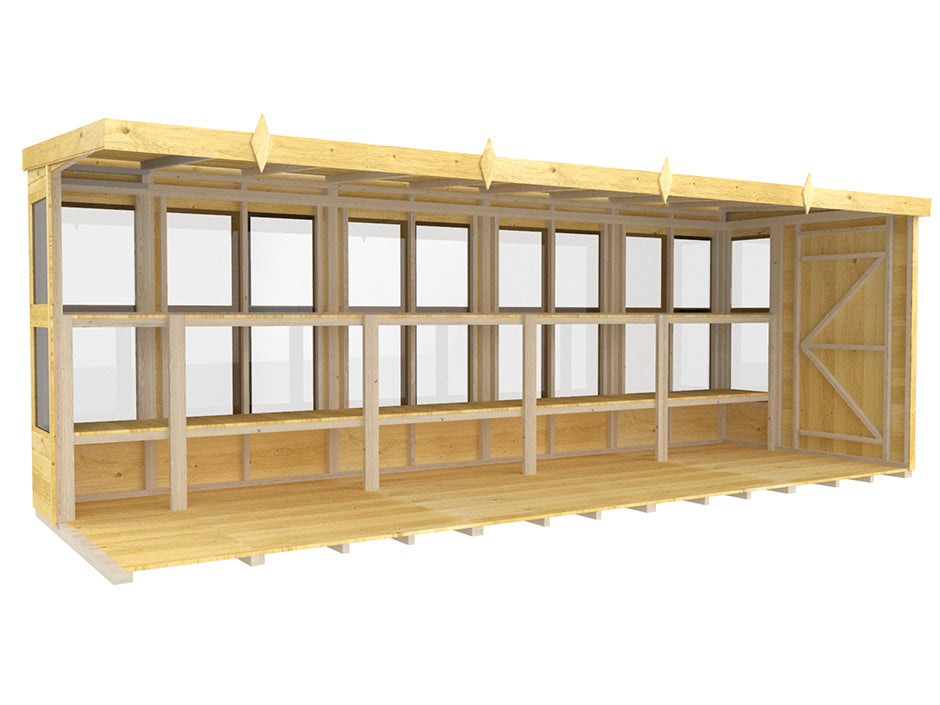 Our potting sheds are built to withstand the heavier elements of British weather, with tongue and groove cladded panels, which are pre-engineered to be as weather resistant as possible. No matter plants and prized possessions you store in our potting sheds, you can be sure it will be protected. With a variety of window placement options, you can make maximum use of the natural source of light. With a FREE internal shelf this will allow you to position your plants in the prime location to help them grow.?The pressure treated tongue and groove construction is a much more substantial design than your normal overlap cladding, utilising thicker material for an overall stronger structure. With its heavy-duty floor, you have also the peace of mind that you won’t be restricted to storing the heavier of goods within. These potting sheds are the ultimate plant storage building which will suit all your needs.