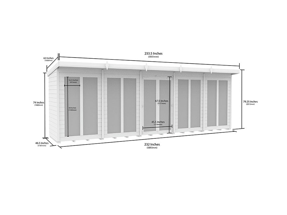 20ft x 4ft Pent Summer House Loglap (Full Height Window)