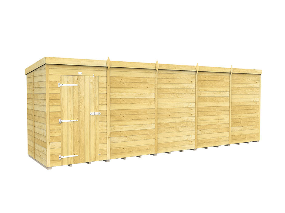 The tongue and groove construction we use in the F&F 20ft x 5ft PentSheds is a much more substantial design than your normal overlap cladding, utilising thicker material for an overall stronger structure. with its interlocking tongue and groove design you can guarantee this will stop rain water from entering the building. With its heavy duty floor you have also the peace of mind that you wont be restricted to storing the heavier of goods within. These sheds are the ultimate garden storage building which will suit all your needs.