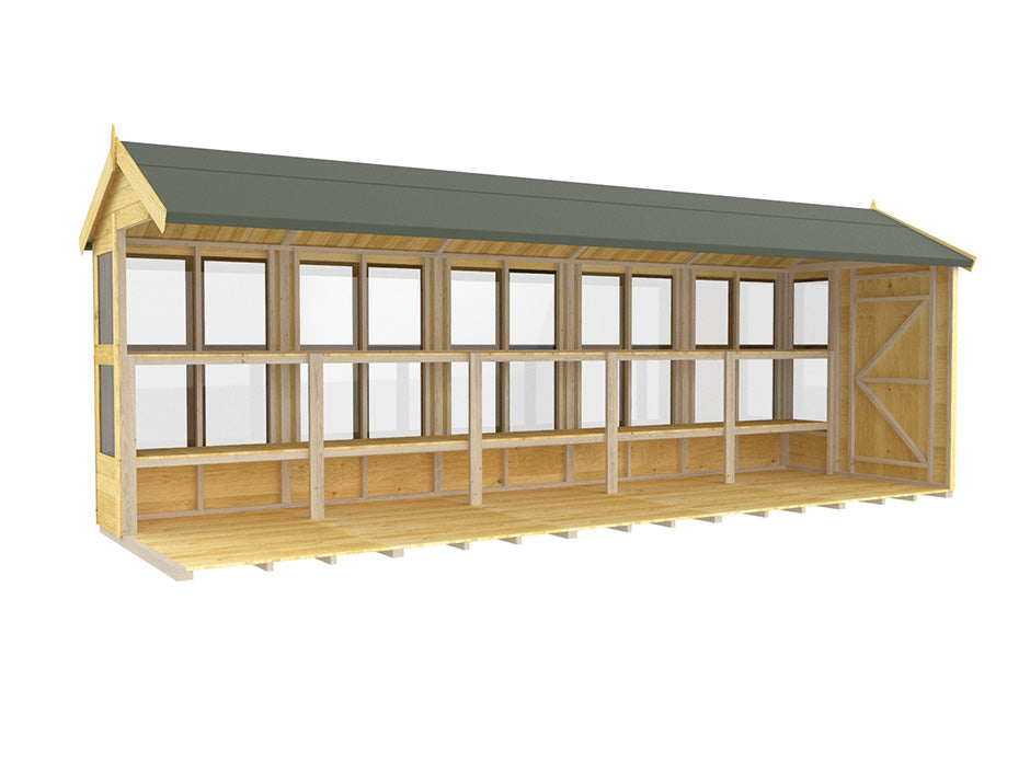 Our potting sheds are built to withstand the heavier elements of British weather, with tongue and groove cladded panels, which are pre-engineered to be as weather resistant as possible. No matter plants and prized possessions you store in our potting sheds, you can be sure it will be protected. With a variety of window placement options, you can make maximum use of the natural source of light. With a FREE internal shelf this will allow you to position your plants in the prime location to help them grow.?The pressure treated tongue and groove construction is a much more substantial design than your normal overlap cladding, utilising thicker material for an overall stronger structure. With its heavy-duty floor, you have also the peace of mind that you won’t be restricted to storing the heavier of goods within. These potting sheds are the ultimate plant storage building which will suit all your needs.