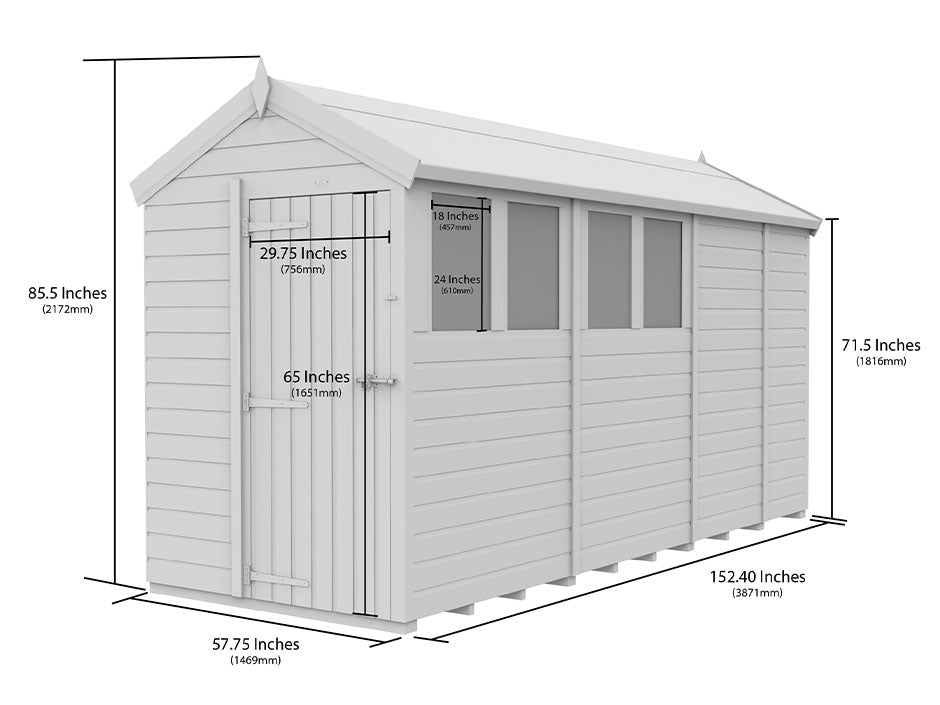 Our 5ft x 13ft Apex Sheds are built to withstand the heavier elements of British weather, tongue and groove cladded panels which are pre-engineered to be as weather resistant as possible. No matter whatever you store inside of the wooden garden sheds, you can be sure it will be protected. With a variety of window placement options, you are able to make maximum use of the natural source of light.