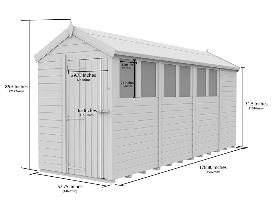 Our 5ft x 15ft Apex Sheds are built to withstand the heavier elements of British weather, tongue and groove cladded panels which are pre-engineered to be as weather resistant as possible. No matter whatever you store inside of the wooden garden sheds, you can be sure it will be protected. With a variety of window placement options, you are able to make maximum use of the natural source of light.