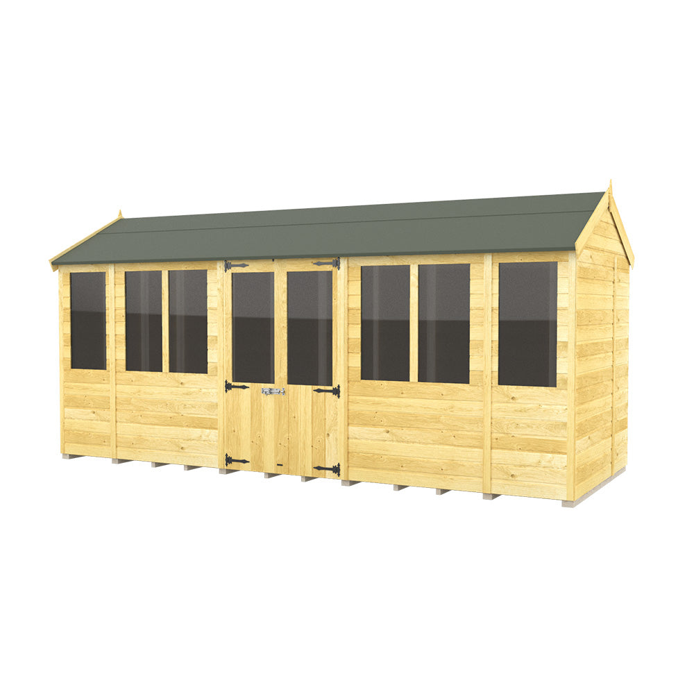 Large toughen glass gives an added safety feature as well as maximizing use of natural light. The pressure treated tongue and groove construction is a much more substantial design than your normal overlap cladding, utilising thicker material for an overall stronger structure. With a heavy-duty floor, you have also the peace of mind that you won’t be restricted to storing the heavier of goods within. These summer houses are the ultimate garden storage building which will suit all your needs.