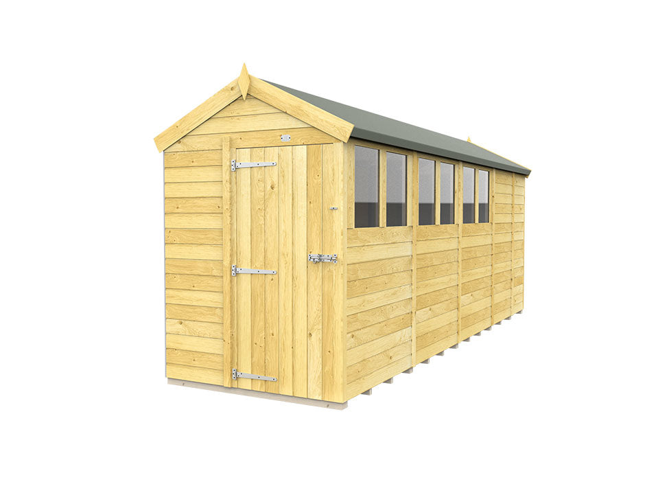 Our 5ft x 17ft Apex Sheds are built to withstand the heavier elements of British weather, tongue and groove cladded panels which are pre-engineered to be as weather resistant as possible. No matter whatever you store inside of the wooden garden sheds, you can be sure it will be protected. With a variety of window placement options, you are able to make maximum use of the natural source of light.