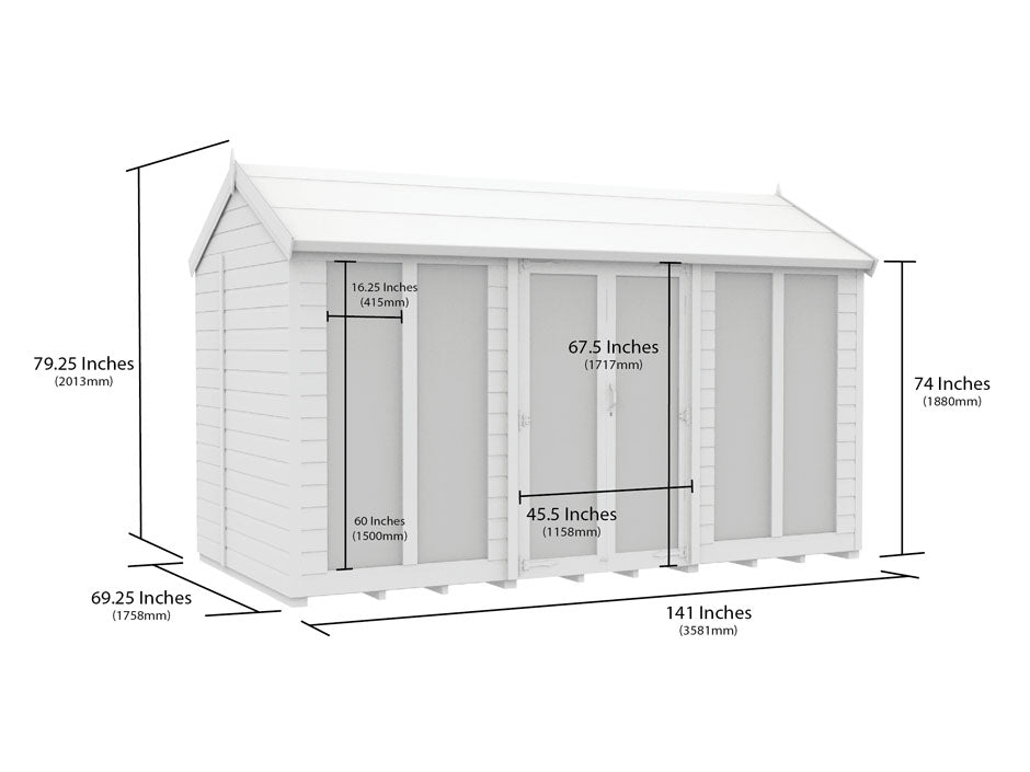 All our summer houses come in metric sizes, please see the dimensions diagram for further details.