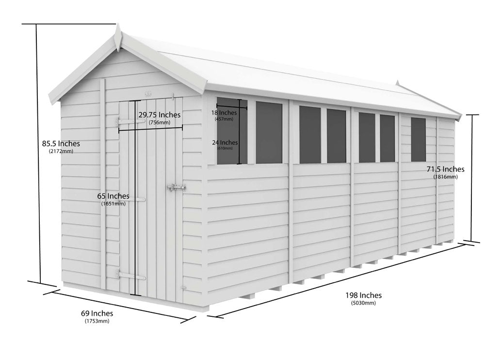 Our 6ft x 17ft Apex Sheds are built to withstand the heavier elements of British weather, tongue and groove cladded panels which are pre-engineered to be as weather resistant as possible. No matter whatever you store inside of the wooden garden sheds, you can be sure it will be protected. With a variety of window placement options, you are able to make maximum use of the natural source of light.