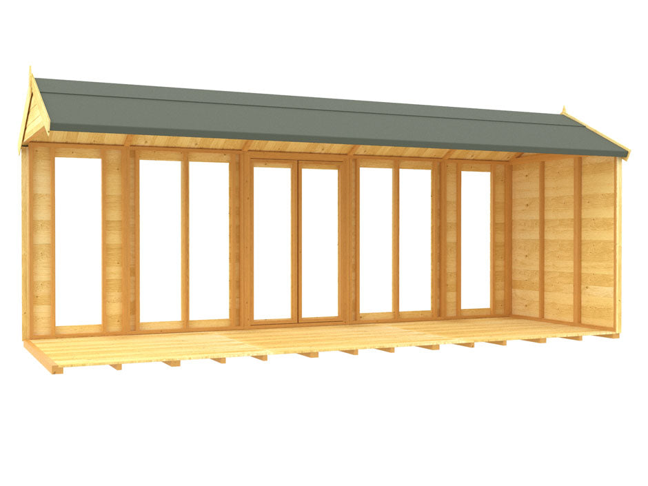 Full height toughen glass gives an added safety feature as well as maximizing use of natural light, not forgetting a beautiful look to your garden building. The pressure treated tongue and groove construction is a much more substantial design than your normal overlap cladding, utilising thicker material for an overall stronger structure. With a heavy-duty floor, you have also the peace of mind that you won’t be restricted to storing the heavier of goods within. These summer houses are the ultimate garden storage building which will suit all your needs.