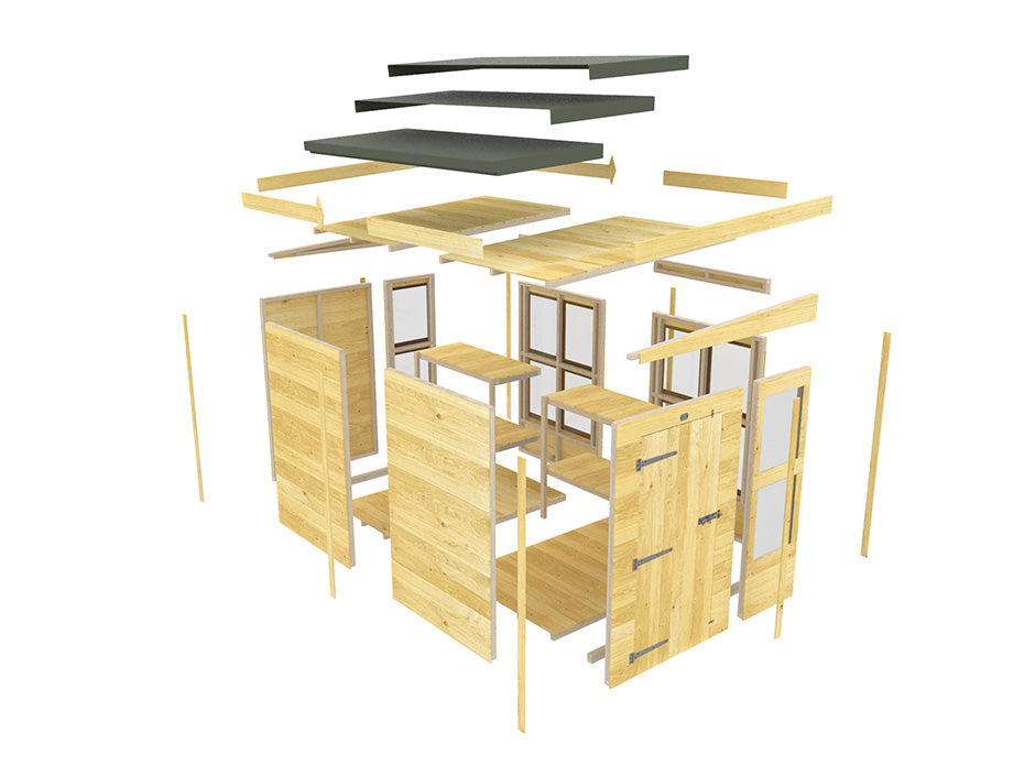 • 38mm x 50mm Framework throughout the building (Including roof and floor)