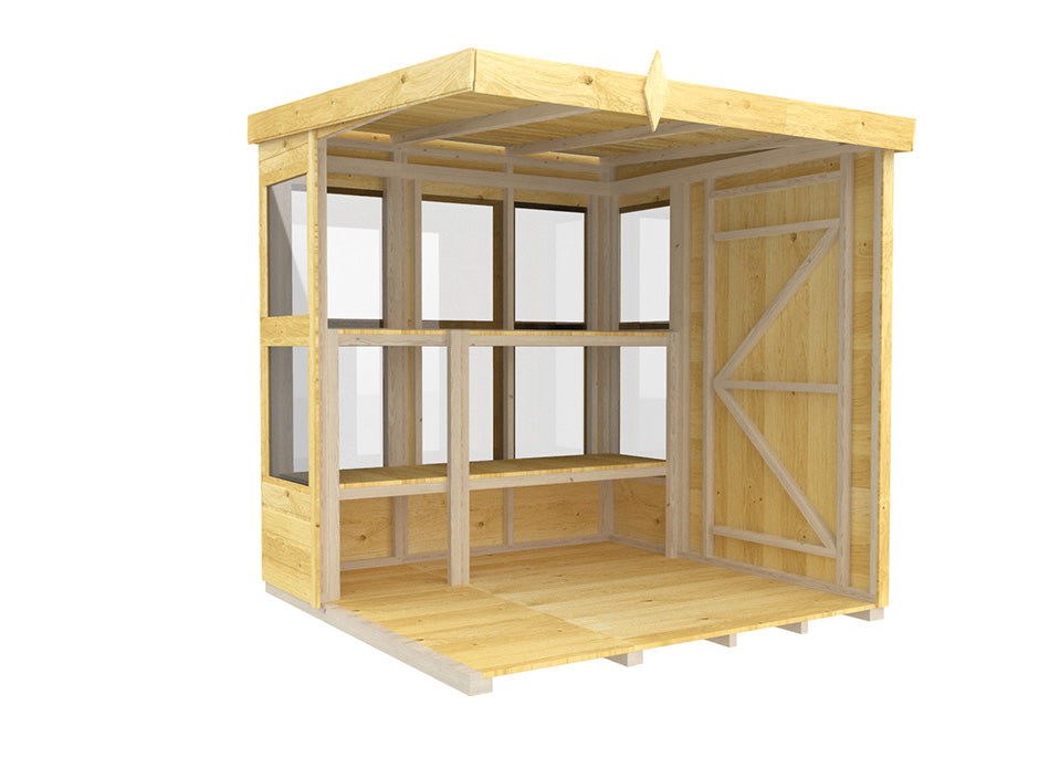 Our potting sheds are built to withstand the heavier elements of British weather, with tongue and groove cladded panels, which are pre-engineered to be as weather resistant as possible. No matter plants and prized possessions you store in our potting sheds, you can be sure it will be protected. With a variety of window placement options, you can make maximum use of the natural source of light. With a FREE internal shelf this will allow you to position your plants in the prime location to help them grow.?The pressure treated tongue and groove construction is a much more substantial design than your normal overlap cladding, utilising thicker material for an overall stronger structure. With its heavy-duty floor, you have also the peace of mind that you won’t be restricted to storing the heavier of goods within. These potting sheds are the ultimate plant storage building which will suit all your needs.
