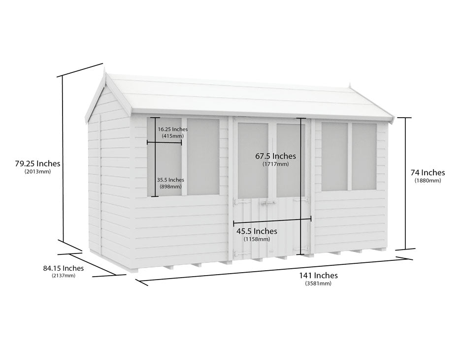 All our summer houses come in metric sizes, please see the dimensions diagram for further details.