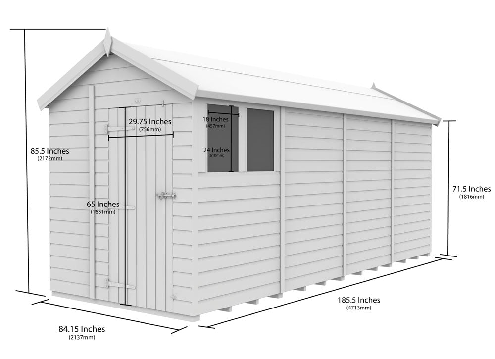 The tongue and groove construction we use in the 7ft x 16ft ApexSheds is a much more substantial design than your normal overlap cladding, utilising thicker material for an overall stronger structure. with its interlocking tongue and groove design you can guarantee this will stop rain water from entering the building. With its heavy duty floor you have also the peace of mind that you wont be restricted to storing the heavier of goods within. These sheds are the ultimate garden storage building which will suit all your needs.
