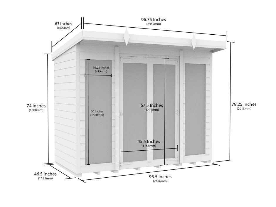 8ft x 4ft Pent Summer House (Full Height Window)