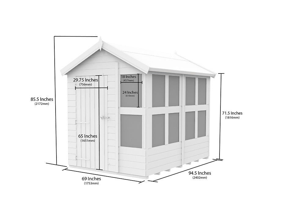 All our sheds come in metric sizes, please see the dimensions diagram for further details.