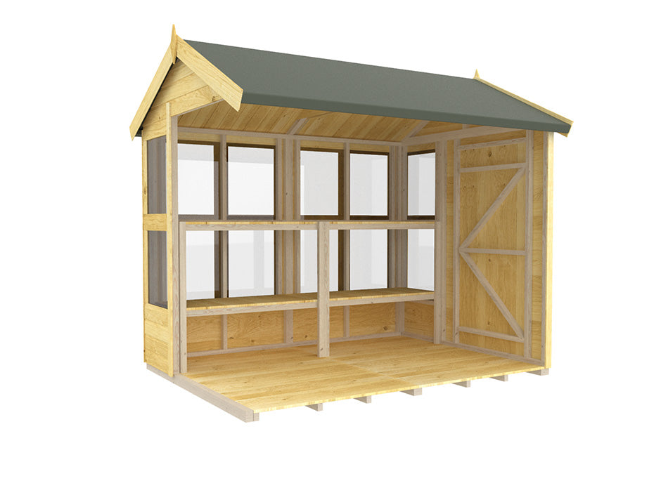 Our potting sheds are built to withstand the heavier elements of British weather, with tongue and groove cladded panels, which are pre-engineered to be as weather resistant as possible. No matter plants and prized possessions you store in our potting sheds, you can be sure it will be protected. With a variety of window placement options, you can make maximum use of the natural source of light. With a FREE internal shelf this will allow you to position your plants in the prime location to help them grow.?The pressure treated tongue and groove construction is a much more substantial design than your normal overlap cladding, utilising thicker material for an overall stronger structure. With its heavy-duty floor, you have also the peace of mind that you won’t be restricted to storing the heavier of goods within. These potting sheds are the ultimate plant storage building which will suit all your needs.