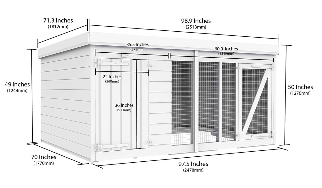 This 8ft X 6ft Dog Kennel and Run is the ideal outside shelter for your dog to allow the perfect space that they need while staying in comfort. This 8ft X 6ft Dog Kennel and Run comes water based treated inside and out to aid against rot so it will last for years.
