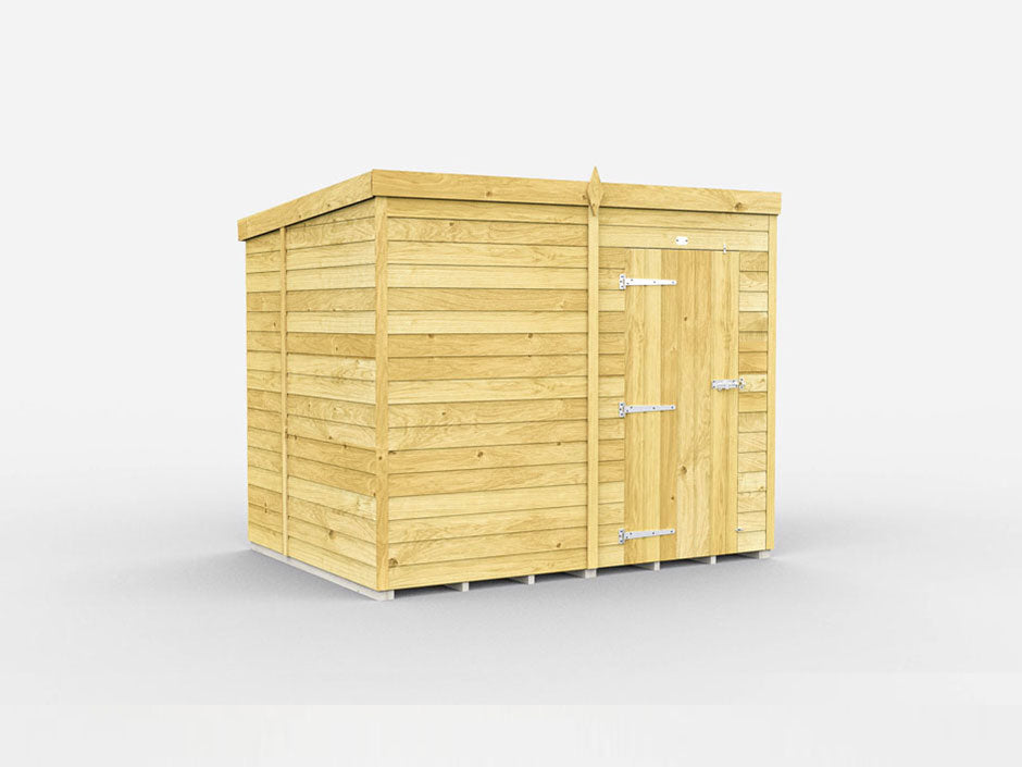 The tongue and groove construction we use in the 6ft x 8ft Pent Sheds is a much more substantial design than your normal overlap cladding, utilising thicker material for an overall stronger structure. with its interlocking tongue and groove design you can guarantee this will stop rain water from entering the building. With its heavy duty floor you have also the peace of mind that you wont be restricted to storing the heavier of goods within. These sheds are the ultimate garden storage building which will suit all your needs.