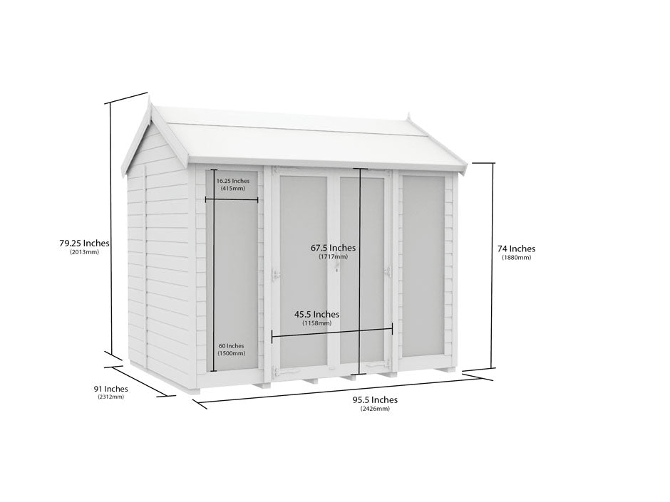All our summer houses come in metric sizes, please see the dimensions diagram for further details.