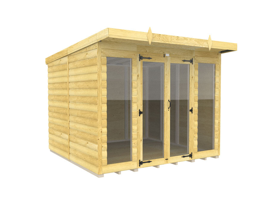 8ft x 8ft Pent Summer House Loglap (Full Height Window)