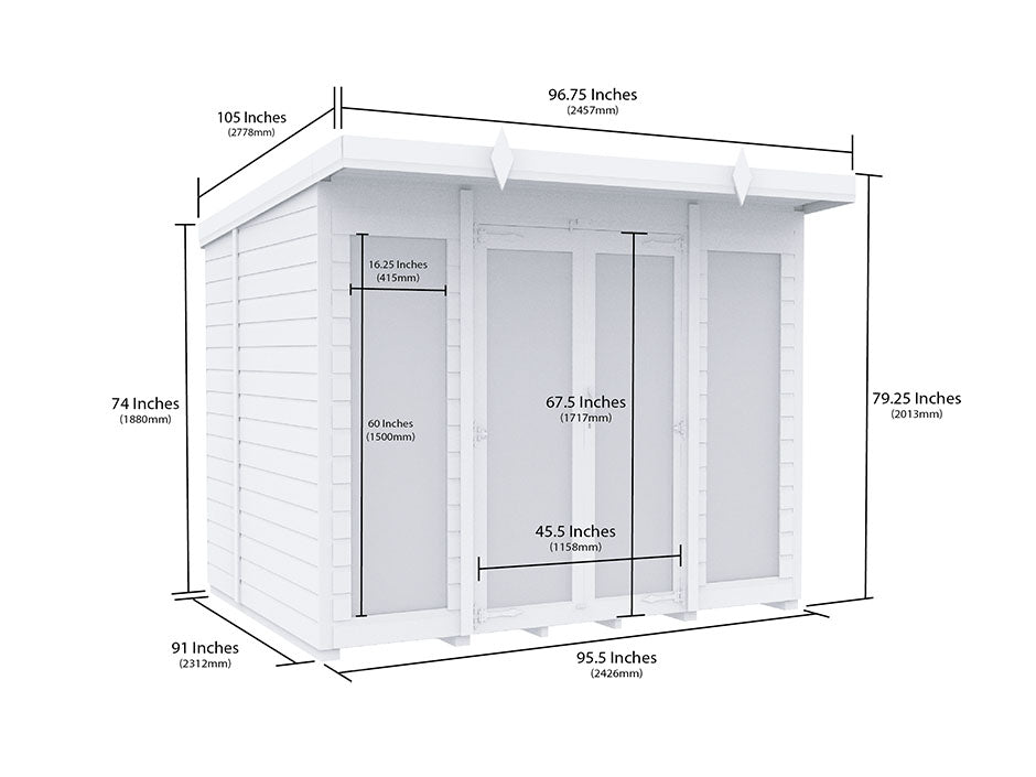 All our summer houses come in metric sizes, please see the dimensions diagram for further details.