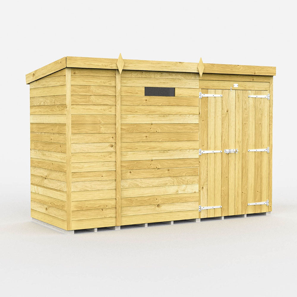 Our F&F 9ft x 4ft Pent Security Sheds are built to withstand the heavier elements of British weather, tongue and groove cladded panels which are pre-engineered to be as weather resistant as possible. No matter whatever you store inside of the wooden garden sheds, you can be sure it will be protected. With a variety of window placement options, you are able to make maximum use of the natural source of light.