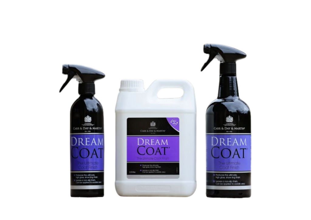 Outshine the competition with Dreamcoat, the ultimate high gloss finish. The unique non-slip formula highlights muscle definition and can be used on the saddle patch, leaving no grease or residue. Spray Dreamcoat onto manes and tails prior to plaiting for a high shine finish.