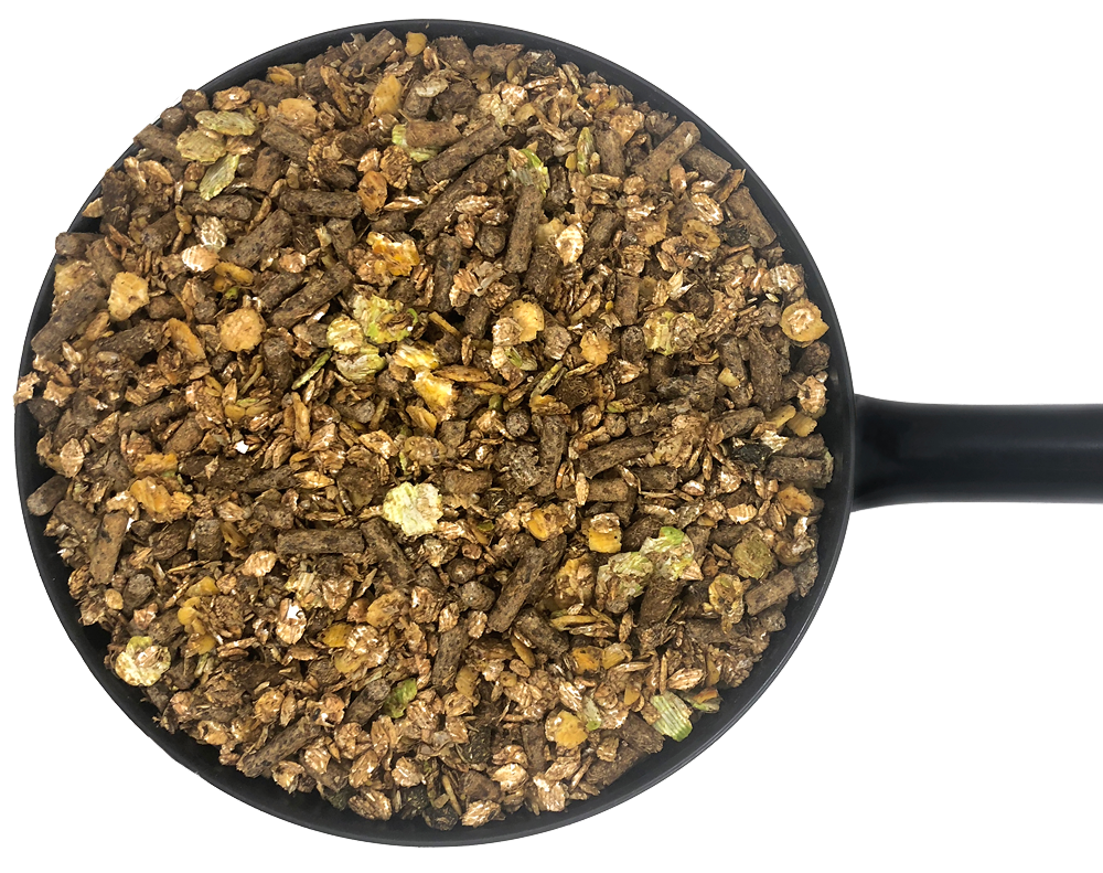 Mares (late pregnancy and lactation) and stallions (hard work): feed 400-500g/100kg bodyweightper day in conjunction with up to 600-750g/100kg bodyweight of oats, if required.