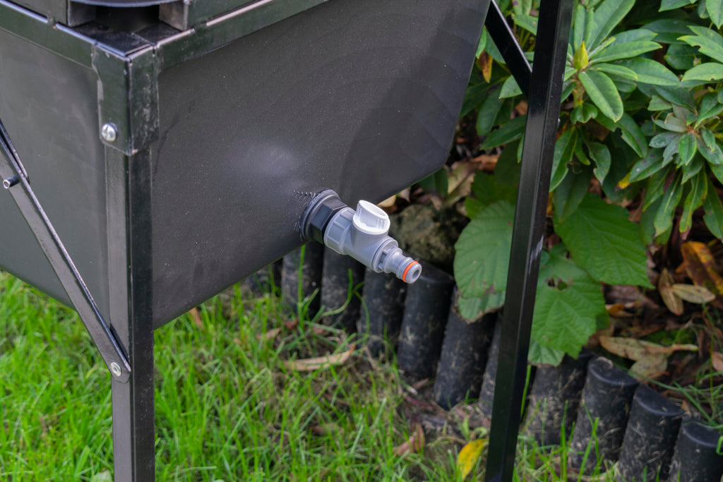 The Drain Kit Plug for Mixing Tub is a durable and essential component for efficiently managing water levels in your container. The drain valve features a BSP Male threaded Water Butt, a BSP threaded valve, and a click-lock quick connect outlet for swift hose connections. This kit ensures secure, watertight fastening with its included nut and washer, preventing leaks and providing precise control over water discharge.