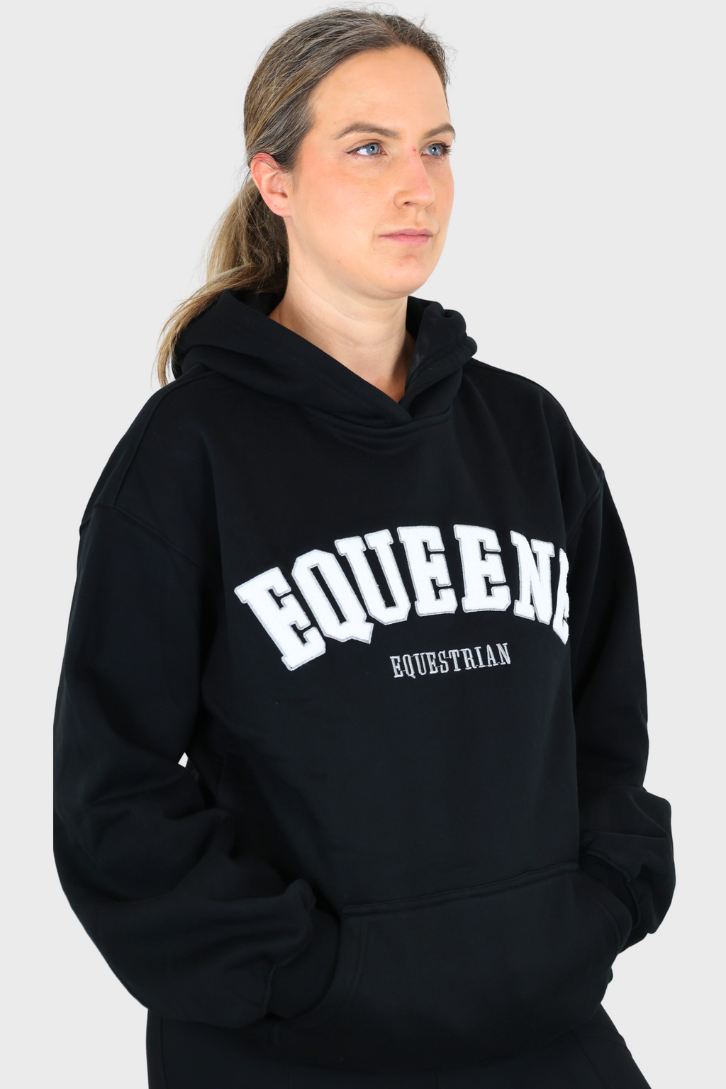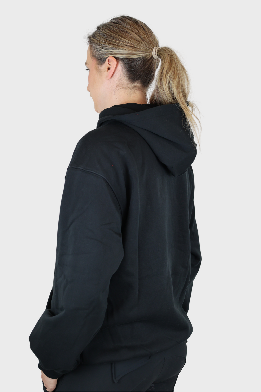 The Ellie Oversized Hoodie is the perfect blend of comfort and equestrian style, designed for long days at the barn or relaxing after a ride. Offering the perfect cosy, breathable feel with an easy going, oversized fit. Featuring a classic varsity-inspired applique patch logo, dropped shoulders, and a spacious kangaroo pocket for practicality, this hoodie is as functional as it is stylish.