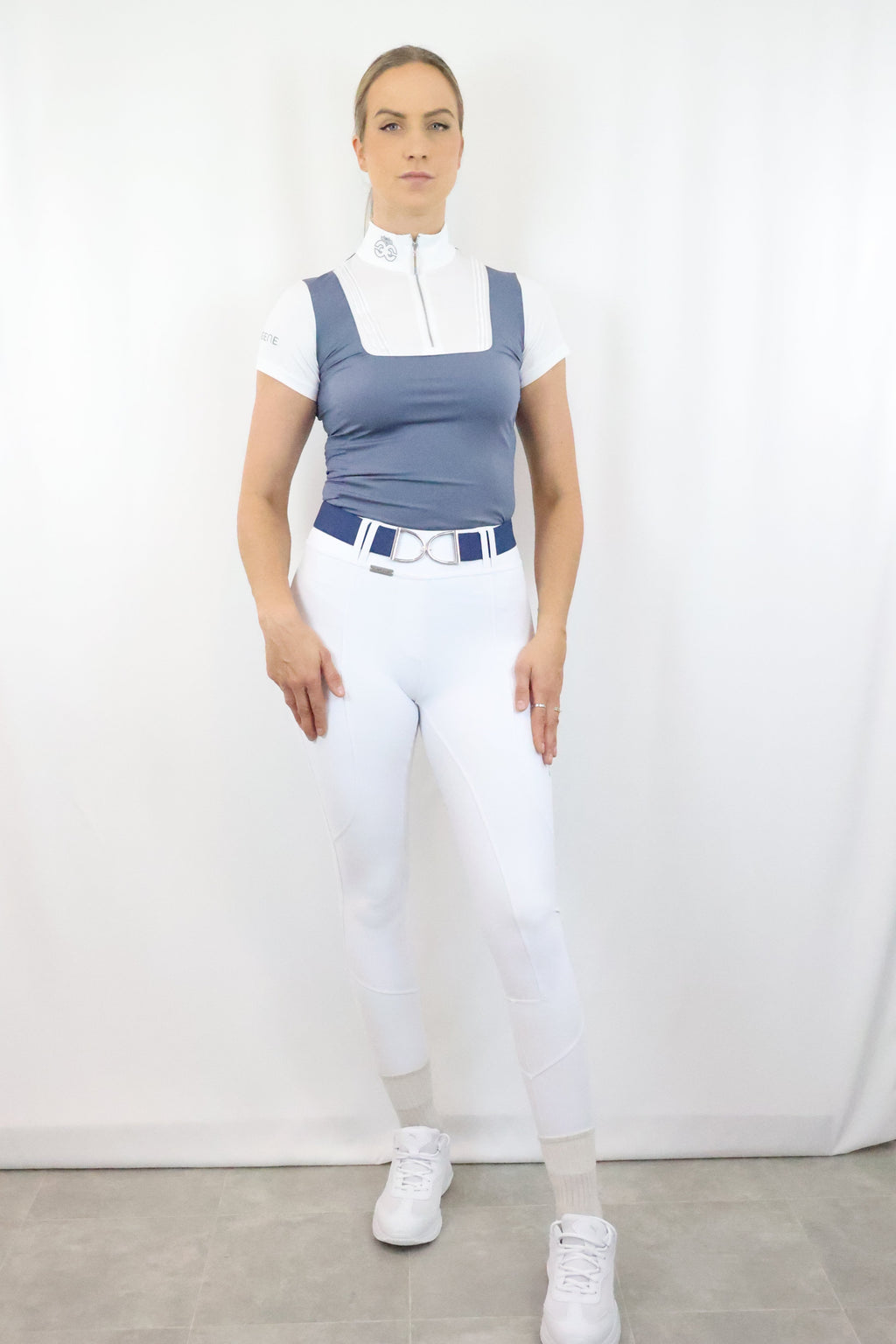 Meet Florence, the ultimate show shirt that blends style and functionality effortlessly. Crafted from the softest, most lightweight material, this high-tech shirt offers a second-skin feel with four-way stretch for unmatched mobility. Its breathable, sweat-wicking fabric keeps you cool and dry in the saddle, ensuring unrivalled comfort throughout long days of competition. The figure-flattering stretch mesh side panelling enhances breathability, making Florence a must-have addition to your competition wardrobe.