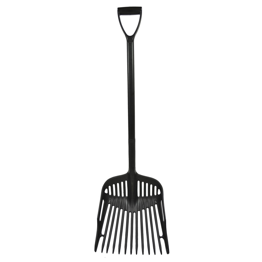 Innovatively designed specifically for stable and yard application. The solid reinforced shaft and large fork provide superior handling performance; material can be easily transported with minimal wastage. The round edged polypropylene tines reduce the risk of damage to floor surfaces, will not puncture rubber matting and are less likely to cause trauma injuries to personnel or livestock. Ideal for use with fibrous materials and stable bedding.